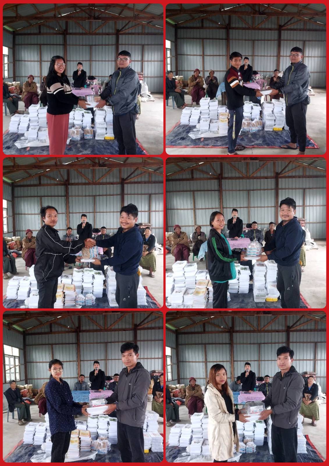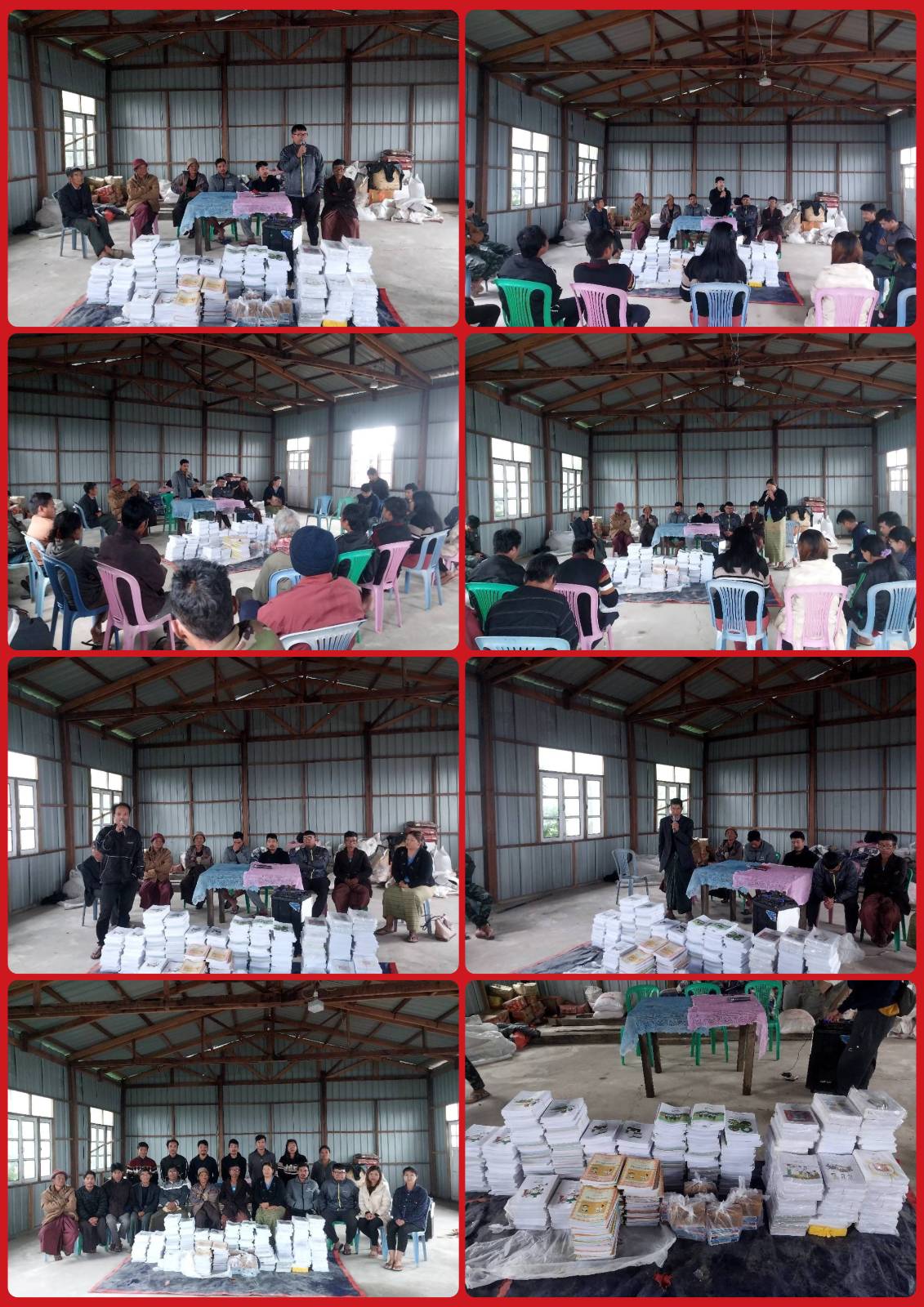 ပုံစာ – Future Hope Foundation မှ ပေးအပ်သော ကျောင်းသုံးပုံနှိပ်စာအုပ်များနှင့် ကျောင်းသုံးပစ္စည်းများကို ကျေးရွာတာဝန်ခံ ပညာရေးဘုတ်အဖွဲ့များမှ လက်ခံနေစဥ်။