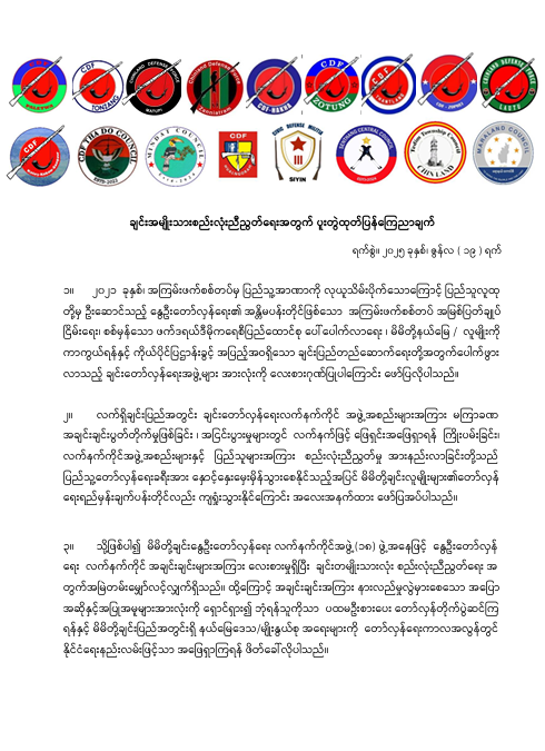 ချင်းမျိုးနွယ်စုအရေးကို တော်လှန်ရေးအလွန်ကာလမှ နိုင်ငံရေးနည်းဖြင့် အဖြေရှာမည့်အကြောင်း ချင်းတော်လှန် ရေးတပ်ဖွဲ့များ ပူးတွဲထုတ်ပြန်