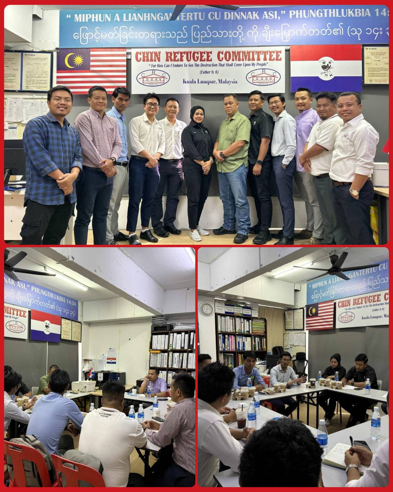 မလေးရှားနိုင်ငံ ကွာလာလမ်ပူမြို့နေရာ တချို့တွင် မိမိတို့လူမျိုးများ၏ စည်းကမ်းမဲ့ သောက်စားမူးရစ်ခြင်း၊ ရမ်းကားခြင်း၊ စည်းကမ်းမဲ့ နေထိုင်သွားလာခြင်းများနှင့်ပတ်သက်၍ IPD-Dang Wangi (ရဲဌာန) အရာရှိအကြီးကဲများနှင့် မလေးရှားရောက် ချင်းဒုက္ခသည်ညွှန့်ပေါင်းအဖွဲ့ ICC ခေါင်းဆောင်များသည် ယနေ့ ဇူလိုင်လ ၁၇ ရက်နေ့တွင် CRC ရုံးတွင် တွေ့ဆုံကာ အစည်းအဝေး ပြုလုပ်ခဲ့ကြောင်း သိရသည်။