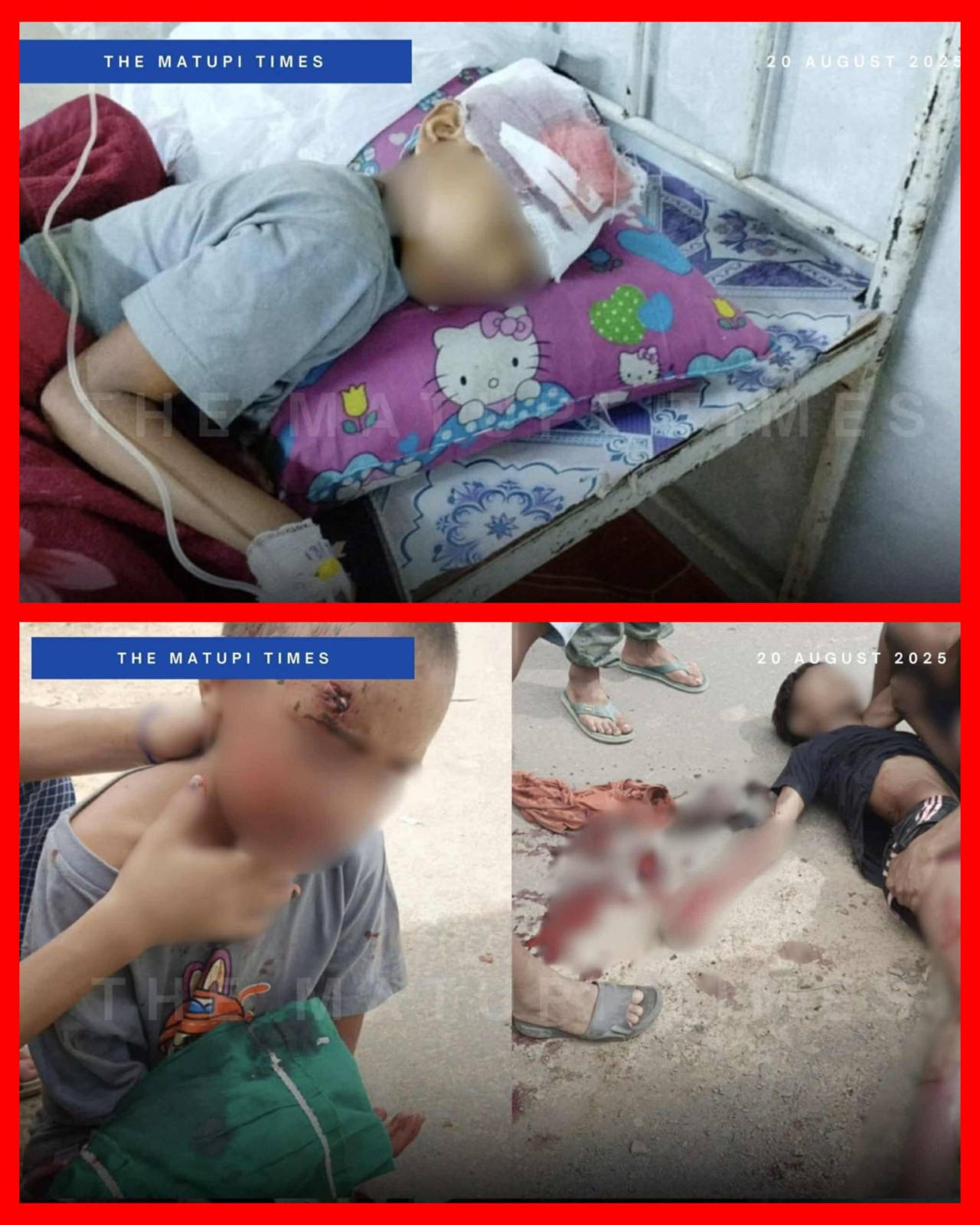 ပြင်းထန်ဒဏ်ရာရသည့် ကလေးနှစ်ဦးကို အိန္ဒိယနိုင်ငံ၊ မီဇိုရမ်ပြည်နယ်တွင် ဆေးကုသရန် ပို့ဆောင်ထားပြီး ကျန်သည့်နှစ်ဦးသည် ဒဏ်ရာမပြင်းထန်သည့်အတွက် မတူပီမြို့နယ်ရှိ ဆေးခန်းတစ်ခုတွင် ဆေးကုသမှုခံယူနေကြောင်း သိရသည်။