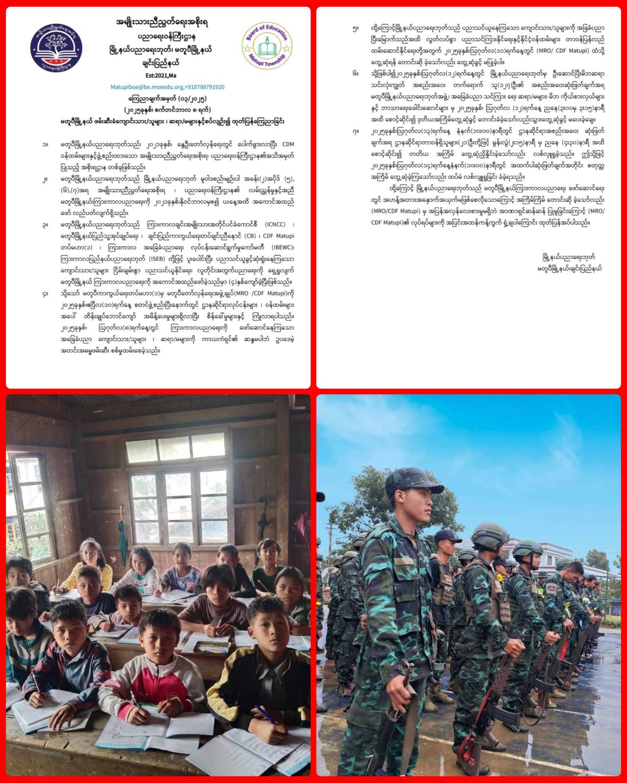 မြို့နယ်ပညာရေးဘုတ်အဖွဲ့သည် ပညာသင်ယူနေကြသော ကျောင်းသား/သူများကို အခြေခံပညာပြီး မြောက် သည်အထိ လွတ်လပ်စွာ ပညာသင်ကြား နိုင်ရေးနှင့် ဝန်ထမ်းများ တာဝန်ပြန်လည် ထမ်းဆောင်နိုင်ရေးအတွက် တွေ့ဆုံဆွေးနွေးရန် ကြိုးစားခဲ့သော်လည်း MRO/CDF-Matupi သည် ၄ ကြိမ်တိုင်တိုင် လစ်လျူရှုခဲ့သည်ဟု ထုတ်ပြန်ချက်တွင် ပါရှိသည်။