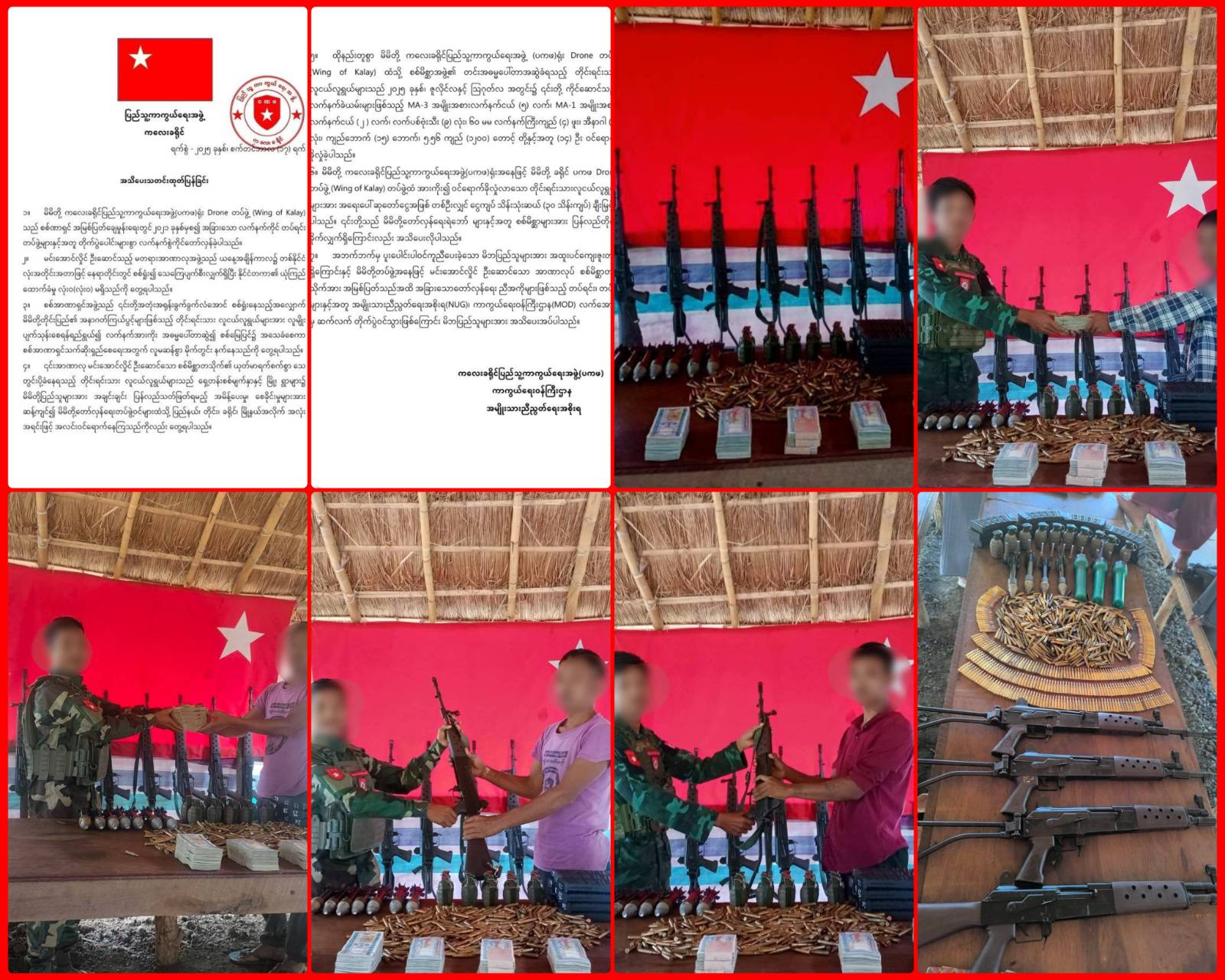 ကလေးခရိုင် (ပကဖ) ဒရုန်းတပ်ဖွဲ့ (Wing of Kalay) ထံ စစ်မှုထမ်းပေါ်တာဆွဲခံခဲ့ရသည့် တပ်သား ၁၄ ဦး လက်နက်ခဲယမ်းများနှင့်အတူ အလင်းဝင်
