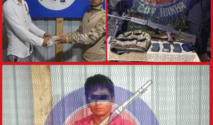 ဟားခါးမြို့တွင် ရဲတပ်သားတစ်ဦးနှင့် စစ်ကောင်စီတပ်သားတစ်ဦး CDF-Hakha ထံ အလင်းဝင်လာပြီး ပြည်သူ့စစ်တပ်သားတစ်ဦးကို ဖမ်းဆီးရမိ ဇူလိုင်လ ၁၅ ရက်၊ ၂၀၂၅။ ချင်းပြည်၊ ဟားခါးမြို့မှ ရဲတပ်သားတစ်ဦးနှင့် စစ်ကောင်စီတပ်သားတစ်ဦး တို့သည် CDF-Hakha ထံတွင် အလင်းဝင်လာပြီး ပြည်သူ့စစ်တပ်သားတစ်ဦးကိုလည်း ဖမ်းဆီးရမိကြောင်း CDF-Hakha မှ ဇူလိုင်…