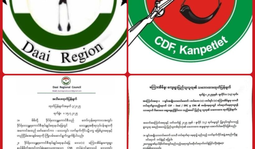 View More မကြားအိမ်နူးကျေးရွာဘက်သို့ စစ်ကြောင်းထိုးဝင်ရောက်လာသည့် CDF-Kanpetlet ကို ပြန်လည်ဆုတ်ခွာရန် DRC က အသိပေး ထုတ်ပြန်မကြားအိမ်နူးကျေးရွာ နယ်နိမိတ်အတွင်း မည်သည့် လက်နက်ကိုင်အဖွဲ့အစည်းကိုမျှ ဝင်ရောက်တပ်စွဲခွင့်မပြု