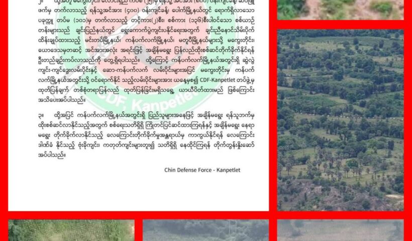 စစ်ကောင်စီတပ် ထိုးစစ်ဆင်တိုက်ခိုက်နိုင်သောကြောင့် ကန်ပက်လက်မြို့နယ်သို့ ဝင်ရောက်နိုင်သည့် လမ်းပိုင်းများ CDF-Kanpatlet ယာယီပိတ် သြဂုတ်လ ၂၂ ရက်၊ ၂၀၂၅။ ချင်းပြည်၊ ကန်ပက်လက်မြို့နယ် သို့ မကွေးတိုင်း၊ ယောဒေသမှတဆင့် အင်အားအလုံးအရင်းဖြင့် စစ်ကောင်စီတပ်သည် အချိန်မရွေး ထိုးစစ်ဆင် တိုက်ခိုက်နိုင်ရန် ဦးတည်ချဥ်းကပ်လာနေသောကြောင့် ကန်ပက်လက်မြို့နယ်အတွင်းသို့ ဝင်ရောက်လာနိုင်သည့် လမ်းပိုင်းများအား…